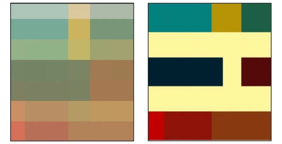 The deconstruction was then scanned and filled in using large blocks of color in Photoshop to analyze the color palette and color adjacenices.